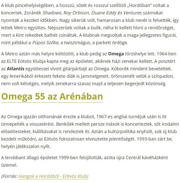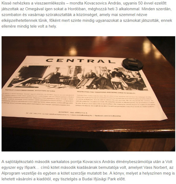 Ez nagy dolog volt, mert azóta sem ismerek ilyen jó helyet. Valóban úgy mentünk oda, ahogyan hazajár az ember. Próbatermünk volt, minden héten háromszor játszottunk és szabadon használhattuk az egész helyiséget. |