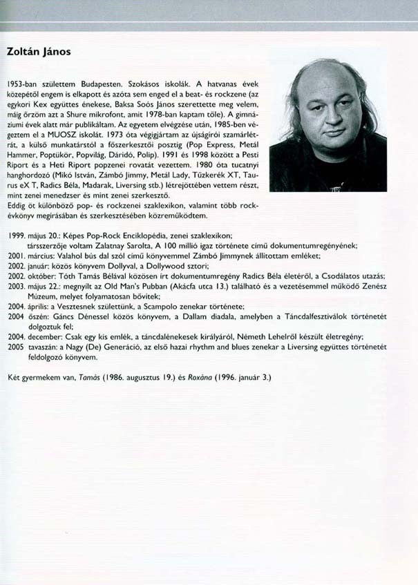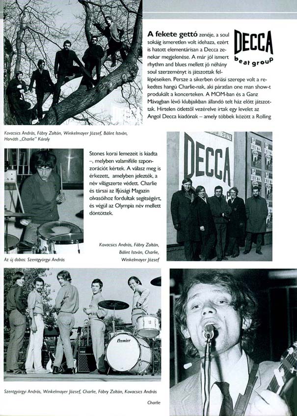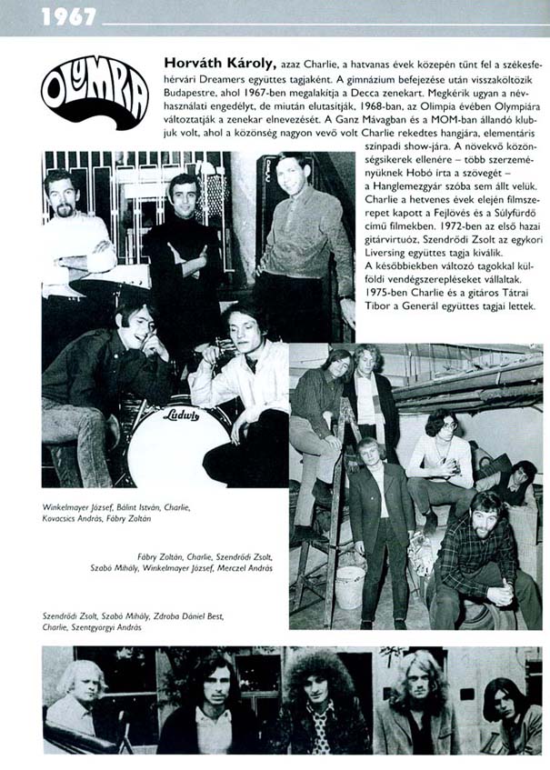 2005 év Karácsonyára Zoltán János, - "rock-szakértő"- összefoglaló rock-történeti könyvet írt Rockcirkusz címmel - az elmúlt 45 év zenekarairól. Ebben a könyvben 2 oldal jutott a Decca-Olympiának. Hibának tartom az írásban, hogy nagyon a Charley áll a központban, holott az elért eredményeink oroszlánrésze a BANDA, valamint zenekarvezetőnk, Winkelmayer József munkájának volt köszönhető. Ne tévesszen meg senkit a mai - általam is elismert, nagyra becsült - sztár, mert 1968-69 évre érvényes a megjegyzésem. |