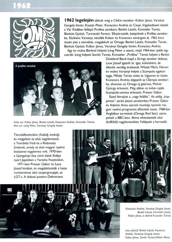 2005 év Karácsonyára Zoltán János, - "rock-szakértő"- összefoglaló rock-történeti könyvet írt " Rockcirkusz" címmel - az elmúlt 45 év zenekarairól. Ebben a könyvben 2-2 oldal jutott az Omega és az Decca-Olympia zenekarnak. A Syconor és Universal nem került bele, hiába adtam anyagot hozzá. Mint az előszóban már említettem, egyrészt ez a tény, másrészt a megjelent könyvben szereplő pontatlanságok késztettek arra, hogy létrehozzam a honlapot. (Már az első mondatban helytelen Kaszán Péter, mert "Koszán" volt a beceneve, alias Fraknói Pál, kimaradt Harmat Laci a szaxofonosok sorából. Laux Józsi egyenesen a Benkó Dixiland Band-ből jött hozzánk.) A nyomda előtt megérdemelt volna egy elektronikus lektorálást. |