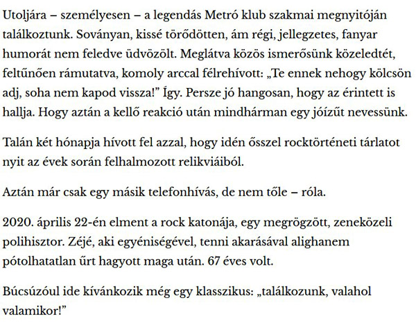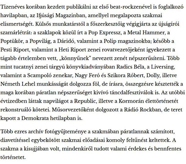 Az író mentségére mondom, hogy 218 zenekarról szól az összeállítás, gigászi munka lehetett az adatgyűjtés, figyelembe véve az alanyok felkutatását. Mindenképpen köszönet érte! |