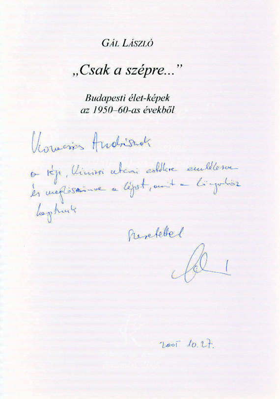 A Fekete Sas Kiadó gondozásában jelent meg Gál László képes gyűjteménye "Csak a szépre..." címmel. Megtiszteltetésnek élem meg, hogy helyet kaptunk a 60-as évek kapcsán egy fotó erejéig a könyvben. Igazi nosztalgia lapozgatni fiatalkori életem emlékképei között. Gál László személyesen járt nálam és választotta ki az Eötvös Klubban készült Omega felvételt az úgynevezett "hordó" színpadán. |