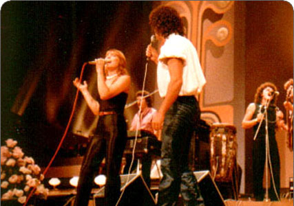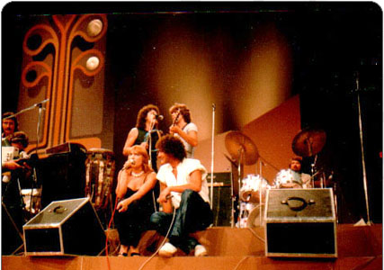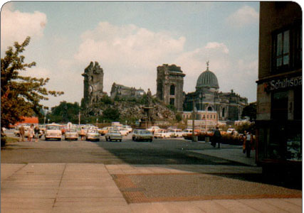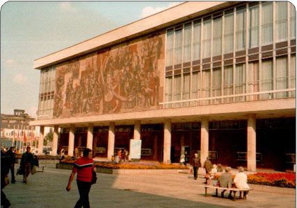 Mindössze egy fellépésre repültünk - akkor még NDK-ba - Drezdába. A koncert a város szívében fekvő Kultur Palastban volt. Azt tudni kell, hogy Kati a hetvenes évek derekán NDK-ban - mondhatni a mai divatos szóval - megasztárnak számított. Német nyelven is futottak slágerei és rengeteget járt fellépésekre. Ez még a közös munkánk előtt volt, nekünk már csak utózengésként - sajnálatunkra - ez a drezdai és később egy berlini fellépés jutott. A képeken látható a két technikusunk : Mucsányi László és akiről a kubai turné kapcsán a "hátsó lépcsőház sztorit említettem": Mihályi István, Trombi.
