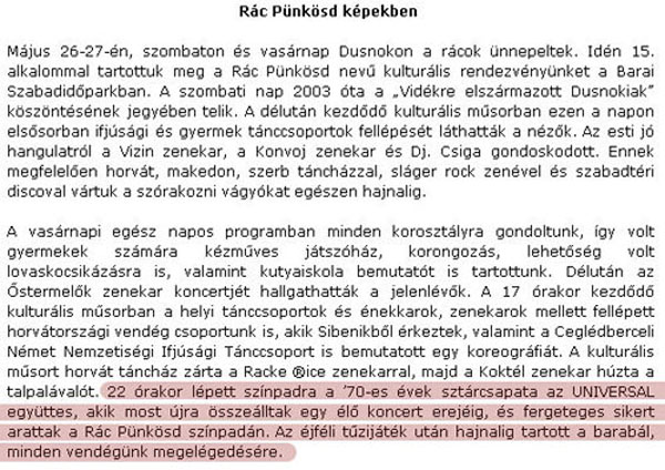 Bocsánat, hogy csak ilyen későn jelentkezem. Őszintén szólva, először sokat tipródtam azon, hogy hogyan is lehet megköszönni azt a produkciót, amit az idei Rác-Pünkösdön kaptunk tőletek. Szóval nem találtam a megfelelő jelzőt arra a két és fél órára, amit a színpadon töltöttetek, de talán nem járok messze az igazságtól, ha az egész estéről nekem az a szóösszetétel jutott eszembe, hogy: SZERETETÜNNEP!