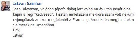 Másik apropó az írásra: a napokban kaptam egy E-mailt Szabó Istvántól: |