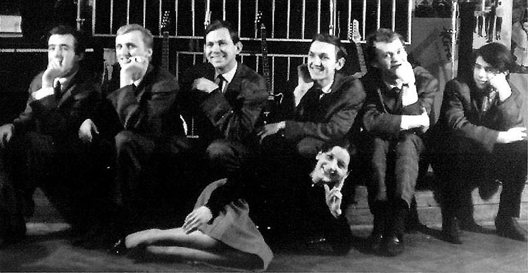 Laux Józsi, Benkő Laci, Kovacsics Öcsi, Varsányi Gergely, Mecky, Somló Tomi, Wittek Mari az Eötvös klubban. |