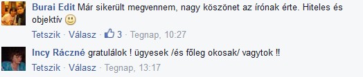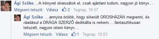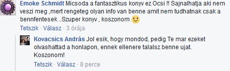 Zömében a Facebook-ról gyűjtöttem össze a könyvvel kapcsolatos visszajelzéseket, így egyben látni jó érzés, meggyőznek arról, hogy megérte a fáradságot, különösen azért, mert nem vagyok író, hanem zenész. |