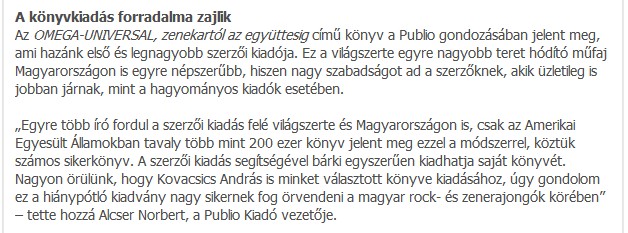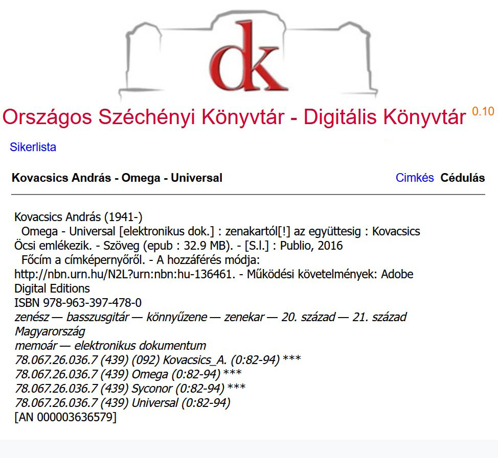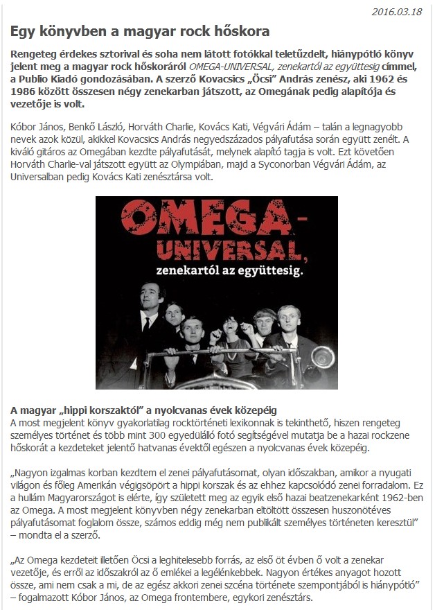 Az UNIVERSAL pedig a Szüleim kedvence volt a lemez a mai napig meg van. Nagyon sok érdekes információt tudtam meg a kötetből az Omegás időszakról, amiket máshol még nem hallottam, Köszönöm!