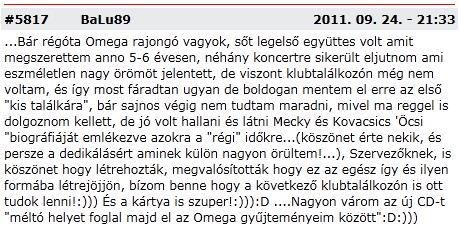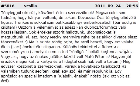 | Egy pár vélemény - a teljesség igénye nélkül - a találkozóról: | ||||||||||||||||||||||||||