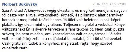Sör, virsli, csajok, külföldi turnék, haknik, no és az első lemezek! Én, mint egy igazi keresztes, lovag, csak szőttem, fontam - no, nem a hálómat - hanem a sztorikat, nótákat, bulikat! Így, most én is boldog vagyok, hogy Öcsi könyvén keresztül átélhetem újra ezt a röpke 50 évet! |