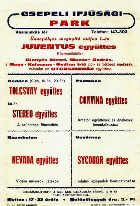 Másik Klub a BKV (Budapest V. Cúria u. 5.) "Trafóházában" volt. Rendesen zúgtak is az erősítőink a számok szüneteiben. A hátunk mögött a színpadon festett molinót használtunk.