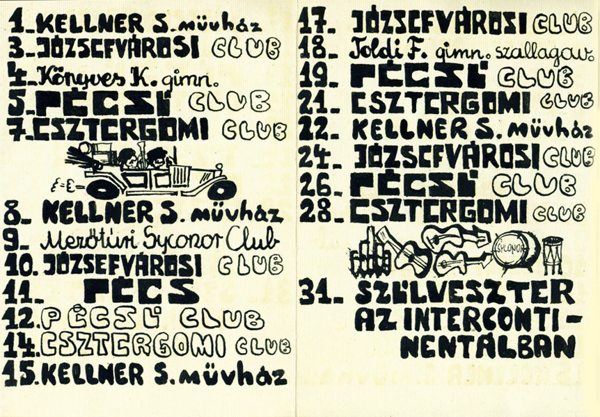 Havonta osztottunk műsortervet Klubtagjainknak, erre igény volt, mert sokan követték a zenekart a vidéki Klubjainkba: Pécs, Esztergom, Mezőtúr... |