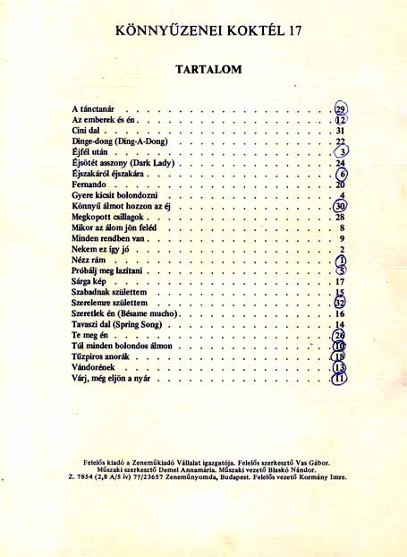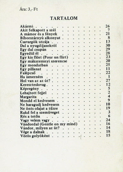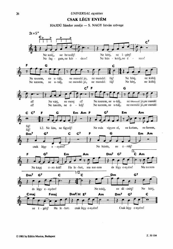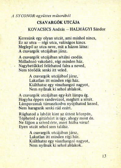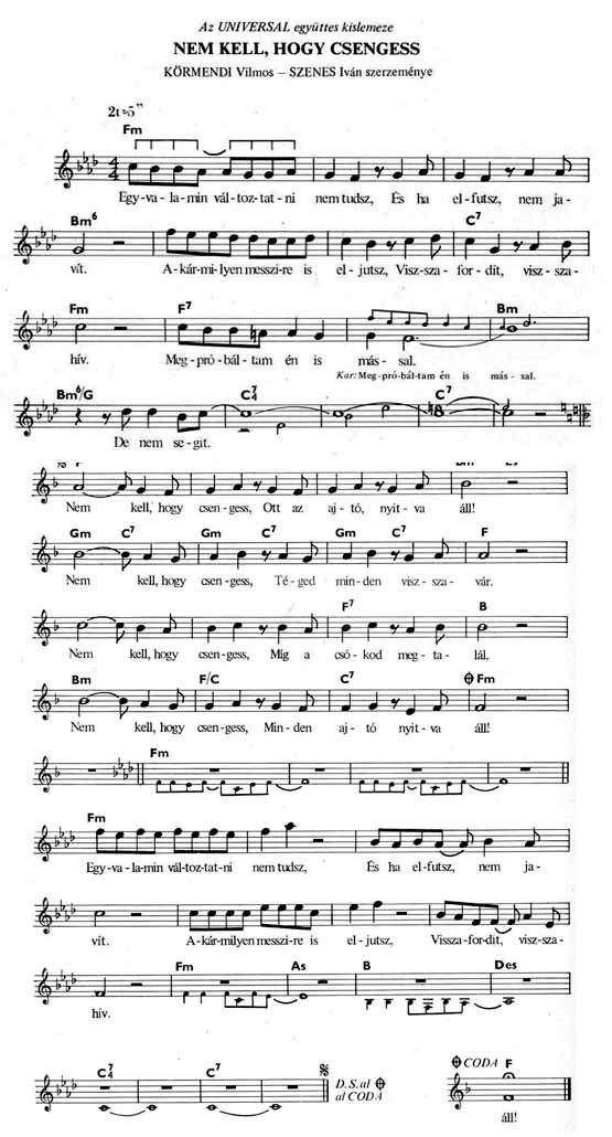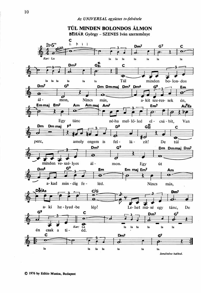 Az igazsághoz hozzátartozik, hogy már a Syconorban megírtam a dalt és mielőtt játszottuk volna, jelent meg Zeneműkiadó egyik kiadványában 1973 évben, de akkor már az időközben megalakult Universal műsorán szerepelt. Az szövegek előadói a gyűjteményben: GENERÁL - és MIKROLIED, KONCZ Zsuzsa és az ILLÉS együttes, BERGENDY együttes, JUVENTUS együttes, SEBESTYÉN Ágnes és az UNIÓ együttes, NON-STOP együttes, CORVINA együttes, MINI együttes, SYCONOR együttes, APOSTOL együttes, MONYÓK Gabi és a BETON együttes, POÓR Péter, KORDA György, KOVÁCS Kati, HARANGOZÓ Teréz, KOÓS János, MARÓTHY Magdolna, MÁTRAY Zsuzsa, DÉKÁNY Sarolta, SÁROSI Katalin.