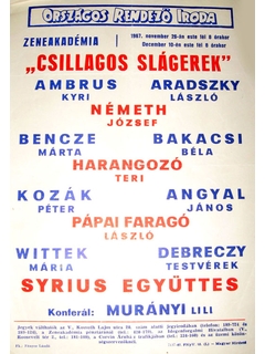 - 1967 nov. 26 és dec. 10 Csillagos Slagerek: Syriussal a Zeneakadémián ORI.