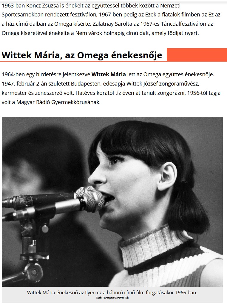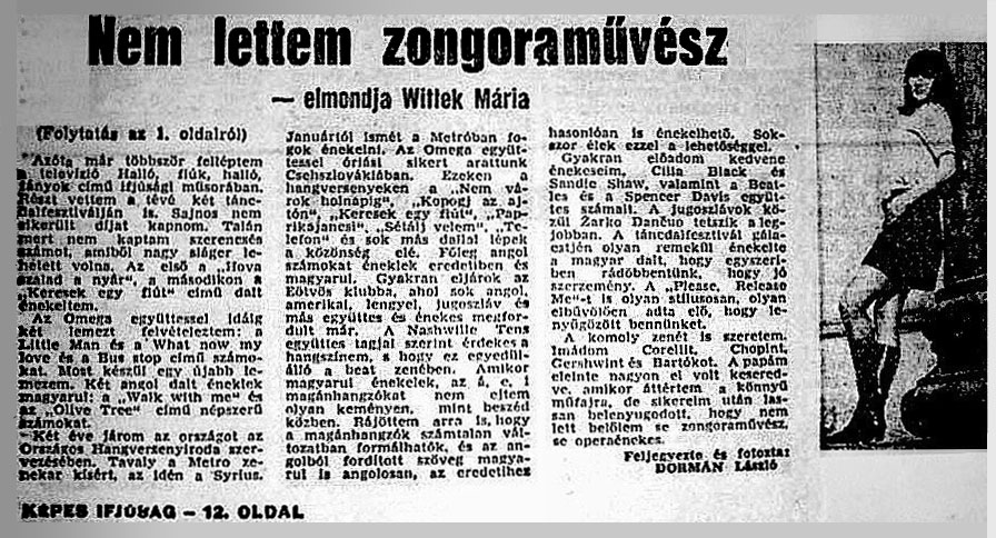 - 1969 Képes Újság Omegaról: "az együttes énekese Wittek Mari, akinek ritkaságbamenő hangjára és --énekkulturájára, még mindig nem figyeltek fel eléggé a könnyűzenei műsorok szerkesztői".
