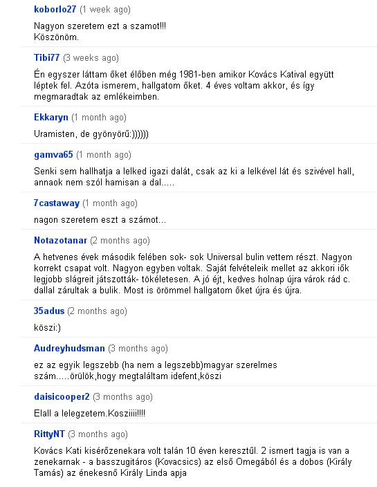 A YouTube-ról, érdekesség végett, bemásoltam mostani véleményeket a "Volt-e más bolond" számunkról: jól esik 20 év elteltével olvasnom!